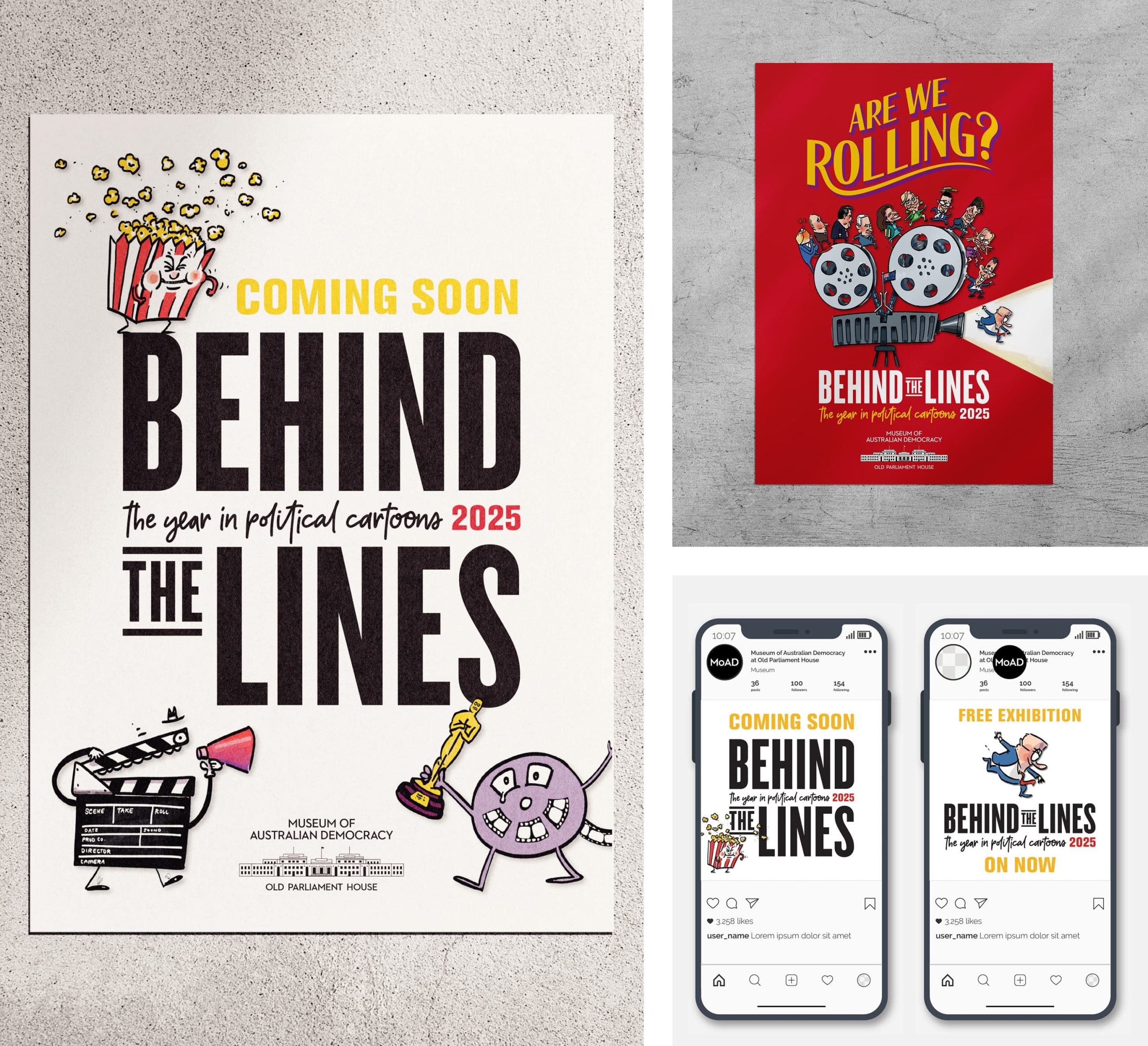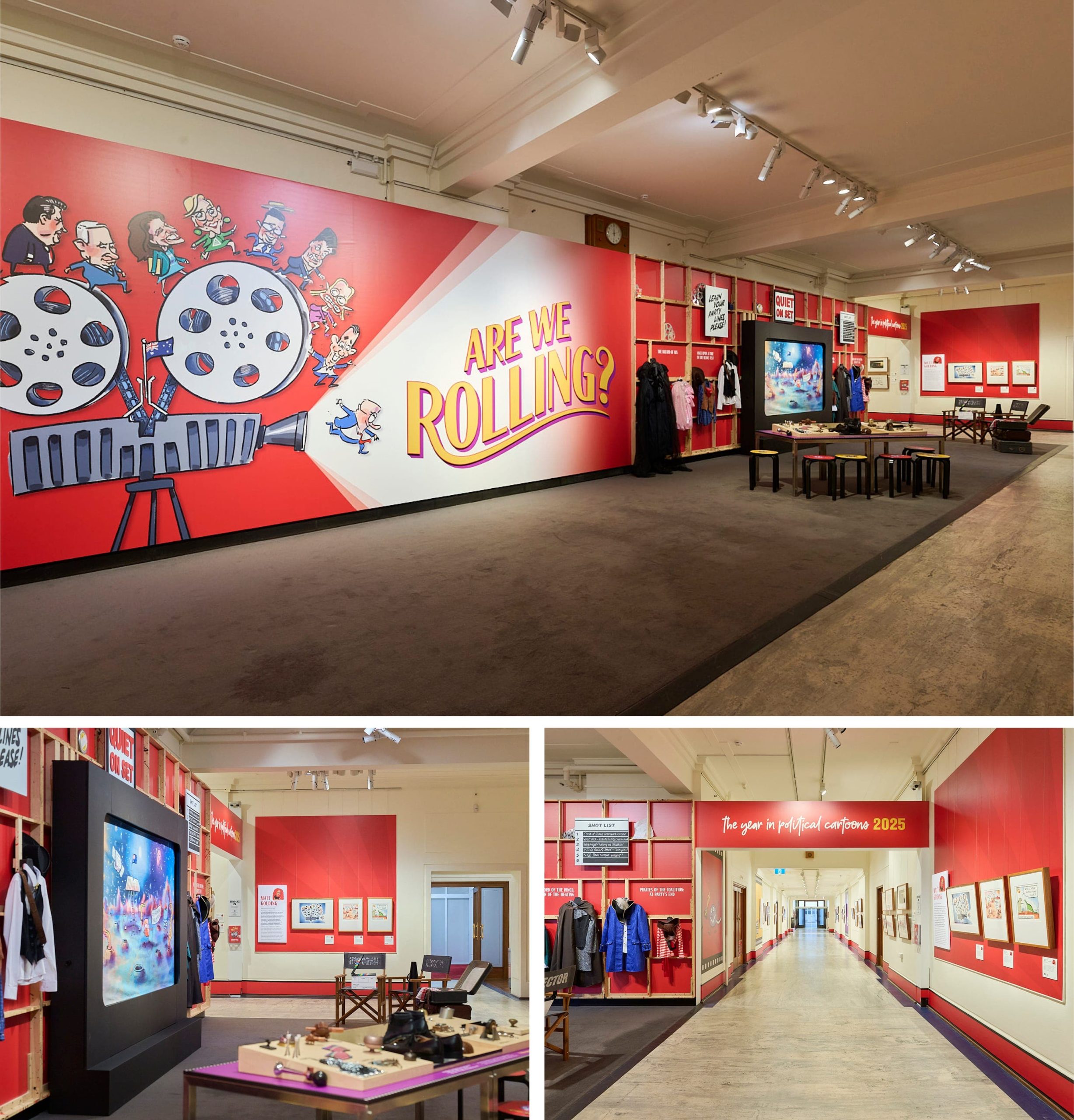 Behind the Lines is the flagship annual exhibition of the Museum of Australian Democracy at Old Parliament House, celebrating political cartooning as a visual record of Australia’s political and social life. In 2025, the exhibition adopts a cinematic theme: Are We Rolling?, reflecting a year defined by drama, unexpected plot twists, romance and heartbreak.
